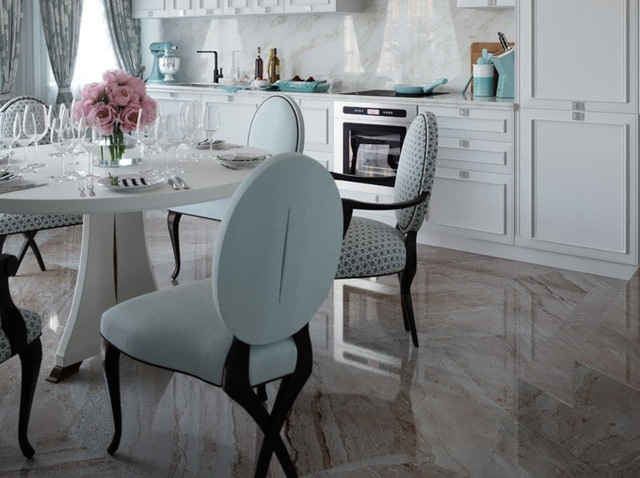 Sàn gạch đá đang là xu hướng được dùng nhiều trong phòng tắm, sảnh, phòng khách. Tuy nhiên, nếu sử dụng quá nhiều, ngôi nhà của bạn sẽ tạo cảm giác giống bảo tàng hơn là nơi ở. Bên cạnh đó, sàn đá đòi hỏi được bảo vệ cẩn thận, nếu không sẽ dễ nứt, bẩn.