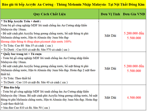 Quý khách hàng liên hệ với chúng tôi - Nội thất Đông Kim để được hỗ trợ, tư vấn và thiết kế miễn phí cùng với báo giá ưu đãi nhất khi lựa chọn tủ bếp chất liệu Acrylic.