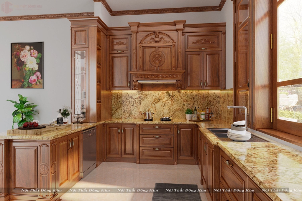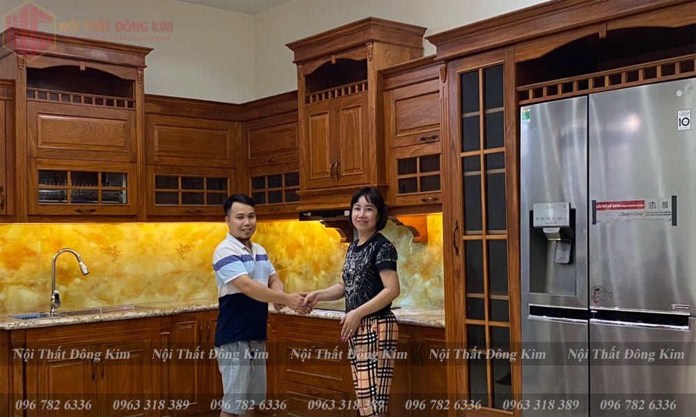 3. Đông Kim thi công tủ bếp gỗ gõ đỏ cho khách hàng