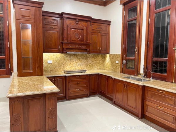 Tủ bếp gỗ gõ đỏ 100% gỗ nhập Nam Phi – bền đẹp với thời gian....