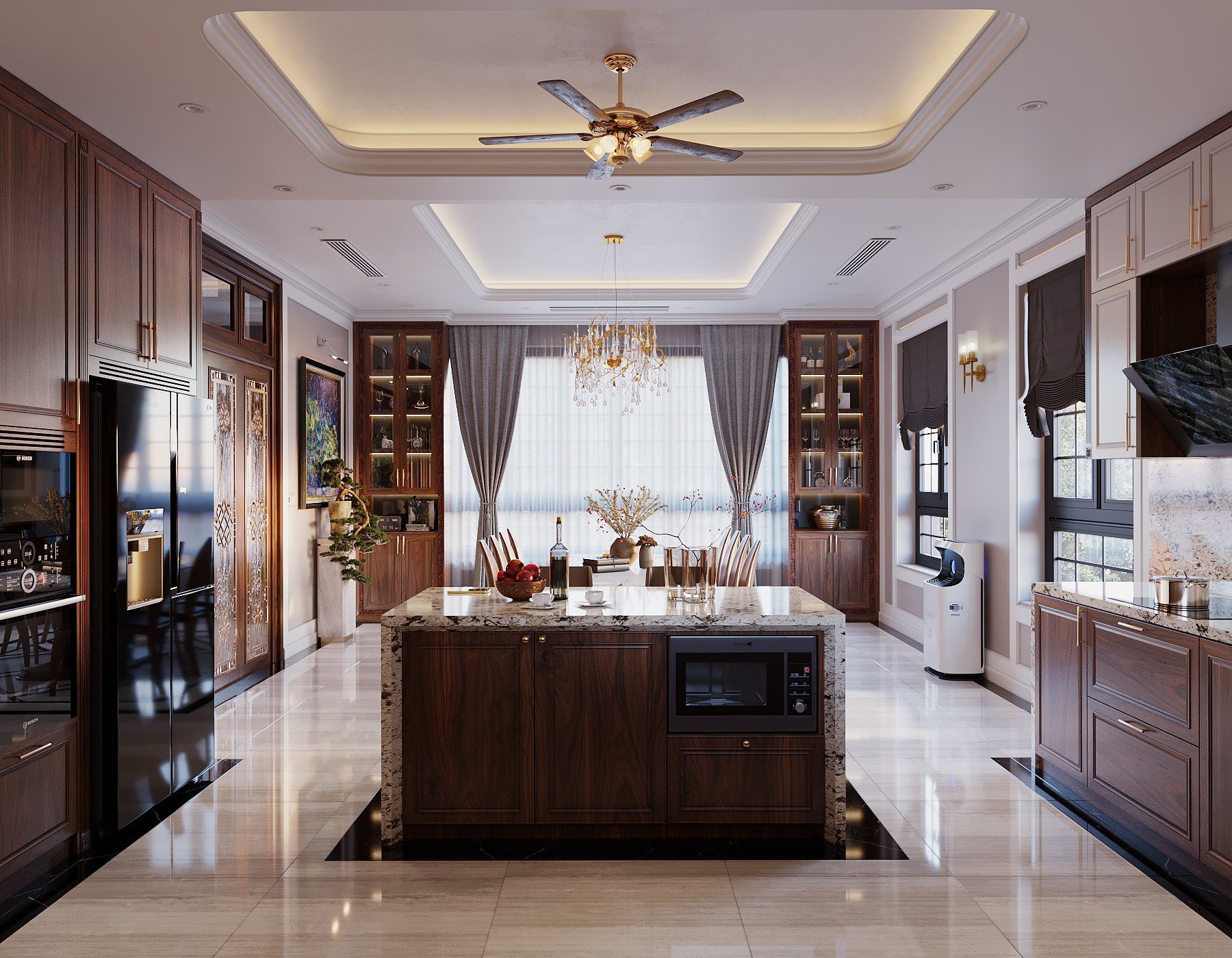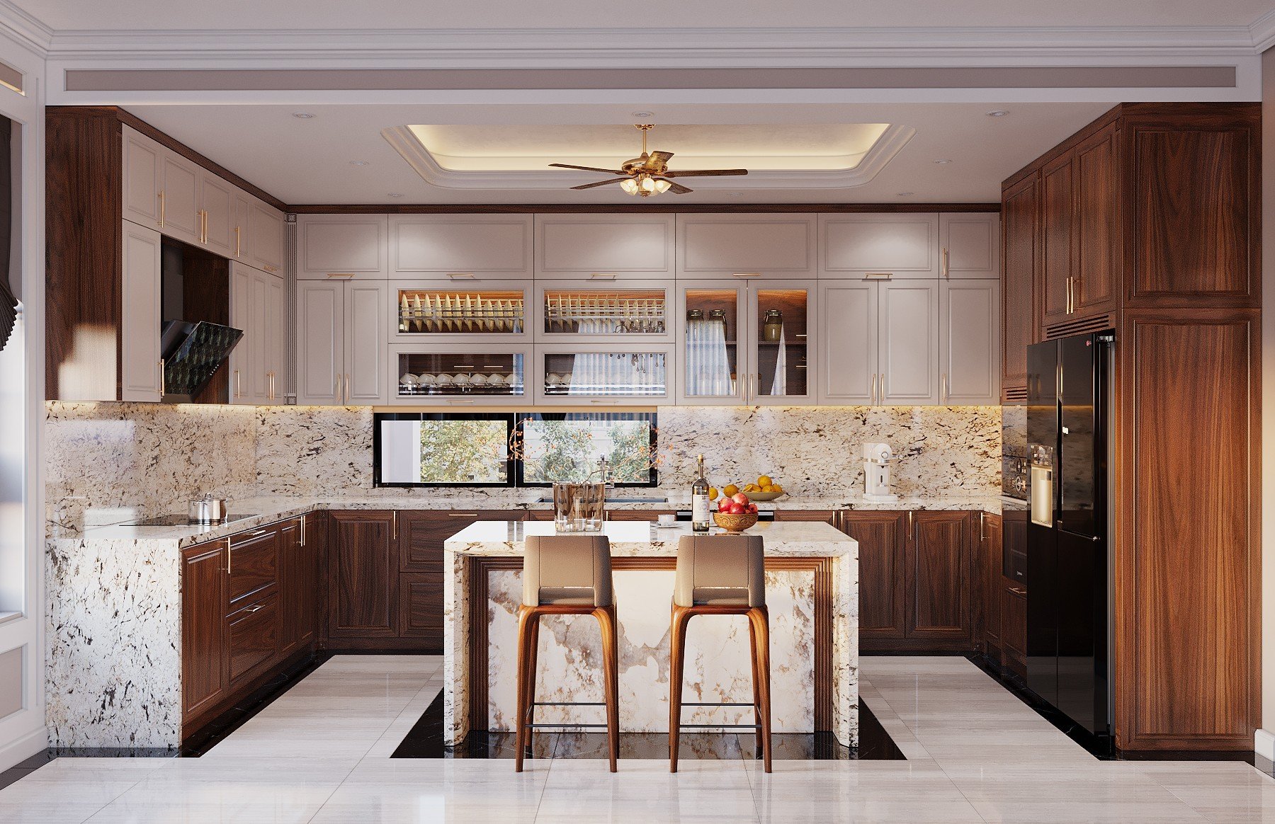 TỦ BẾP GỖ ÓC CHÓ NHẬP KHẨU BẮC MỸ